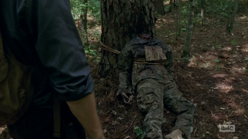 Wie auch schon in der letzten Episode geht es in Dead Weight hauptsaechlich um den Governor. Es geht direkt dort weiter, wo es letzte Woche aufgehoert hat: Gov und seine neue Tochter sind im Loch und werden von Ramirez entdeckt. Nach kurzer awkward silence werden beide gerettet und der Governor und seine Maedels schliessen sich den anderen in Ramirez‘ Wohnwagensiedlung an. Tags darauf zieht der Gov zusammen mit zwei Bruedern aus der neuen Truppe und Martinez fuer einen Supply Run in den Wald. Sie entdecken dort eine andere Gruppe, die sie aber vorerst ignorieren. Als sie auf dem Rueckweg wieder an der Stelle vorbeikommen, ist die Gruppe tot. Unser Protagonist (see what I did there?) erkennt aber schnell den Sachverhalt und weist die anderen daraufhin, dass sie nicht von Zombies ueberrannt wurden: hier wurde Menschenhand angelegt. Und zwar nicht zu knapp. Es gibt zwar noch einen Ueberlebenden, aber der mit Abstand duemmere der beiden Brueder legt diesen direkt um. Weil besser ist besser, you know?