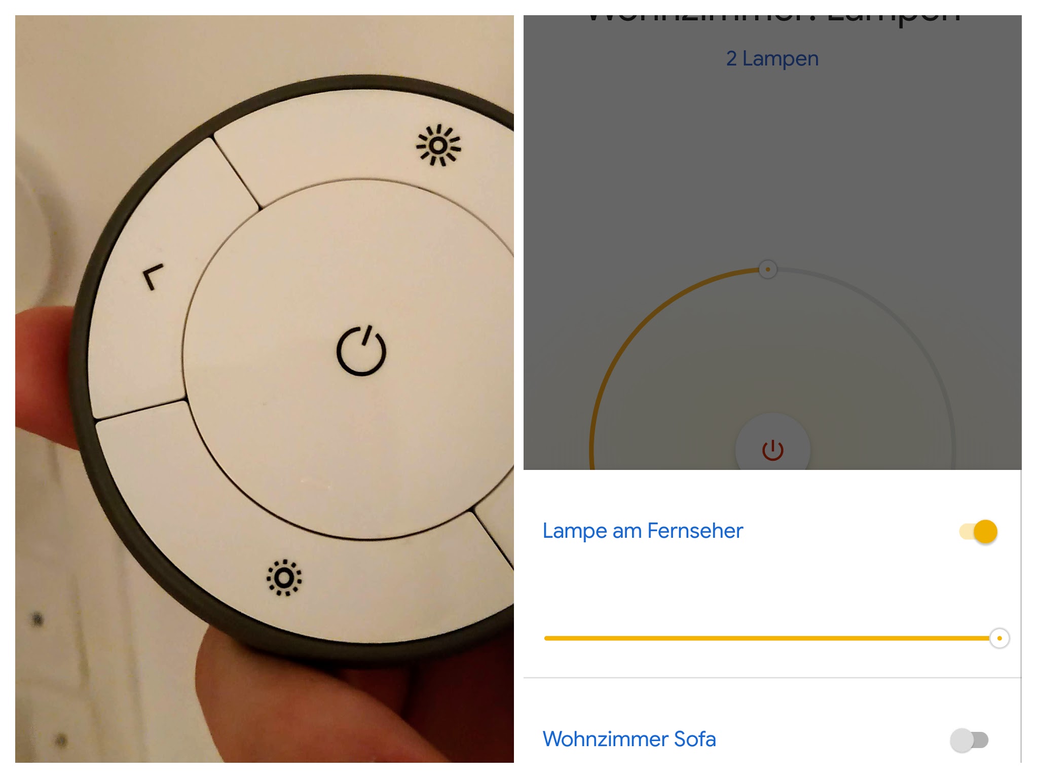 Was mich am Meisten freut ist die Tatsache, dass die Lampen nicht nur per Sprachbefehl (via Google Assistant) und App bedienen kann, sondern auch noch ganz klassisch eine Fernbedienung mit Schalter habe. Denn so schön die Vorstellung auch ist, alles mit der Stimme oder dem Handy steuern zu können: Es geht manchmal einfach schneller, einen Schalter zu drücken, als „Hey Google, schalt das Licht im Wohnzimmer ein“ zu sagen. Die TRADFRI-Fernbedienungen kommen übrigens mit einer praktischen Wandhalterung, sodass sie je nach Bedarf entweder an der Wand hängen oder mit zum Sofa genommen werden können. Ehrlich gesagt nutze ich die Steuerung via App sogar fast gar nicht. Das Gerät entsperren, die App öffnen und schließlich noch die die richtige Lampe auswählen sind mir definitiv zu viele Schritte und selbst wenn es ein Widget für den Homescreen gäbe, wäre mir das zu doof. Die Interkonnektivität zu anderen Geräten und Diensten ist es, die mich begeistert.